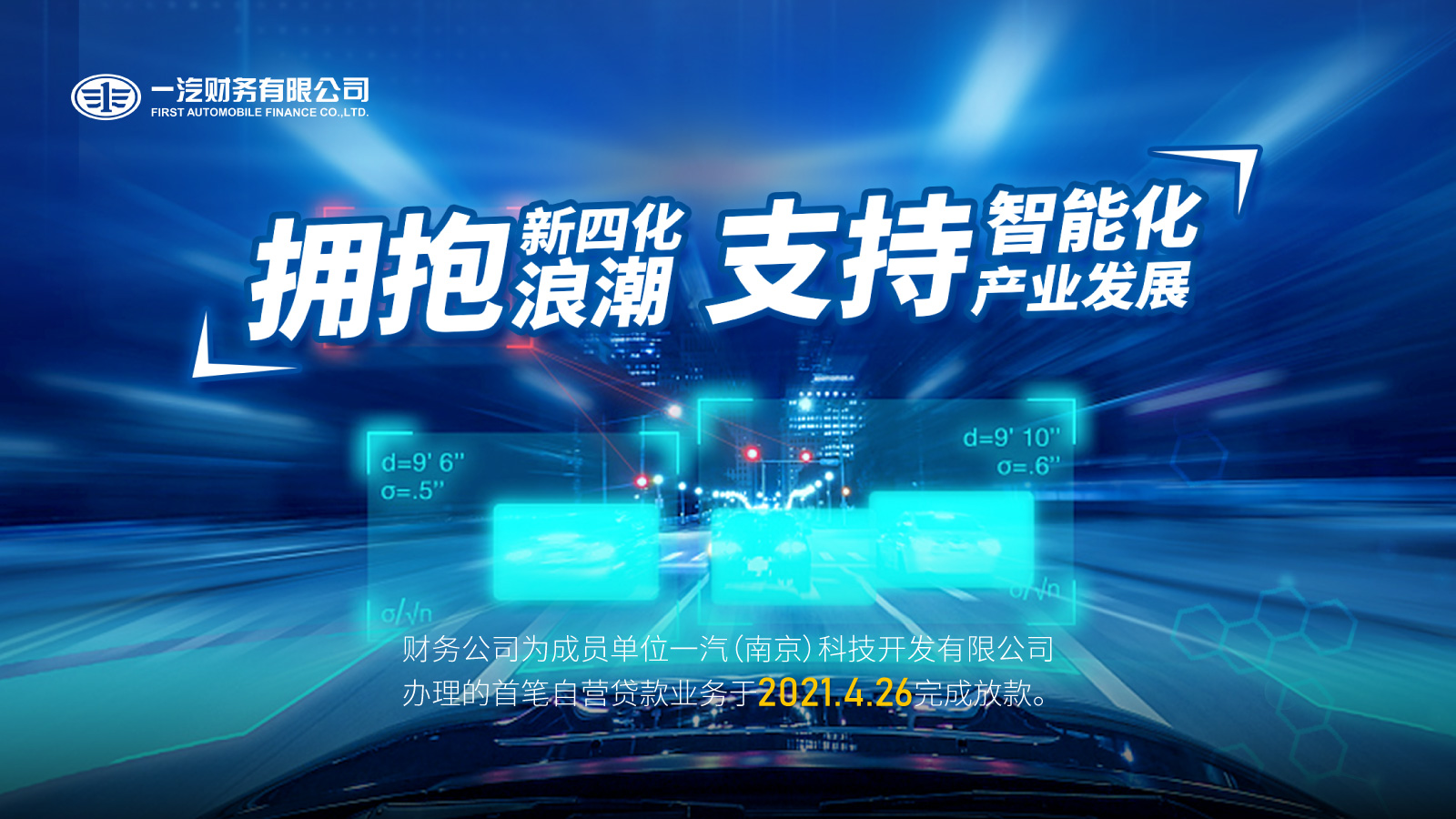 一汽财务有限公司为一汽(南京)科技办理的首笔自营贷款业务落地