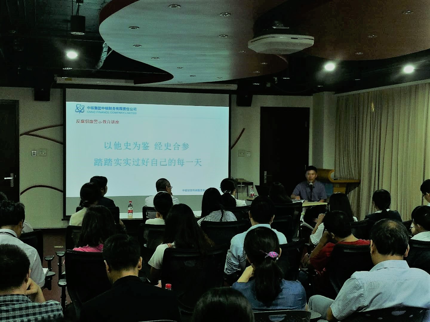 为认真贯彻党中央全面从严治党的精神,落实集团公司2018年党风廉政建设和反腐败工作会议的具体要求,增强公司广大党员干部廉洁意识、纪律意识、合规意识,9月6日下午,中核财务公司举办了反腐倡廉警示教育专题讲座。