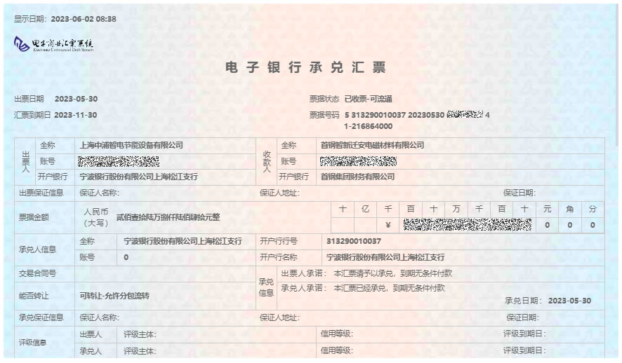一代票据系统于5月22日正式上线,并于6月1日成功接收第一张新一代电票;截至5月底已有86家成员单位通过系