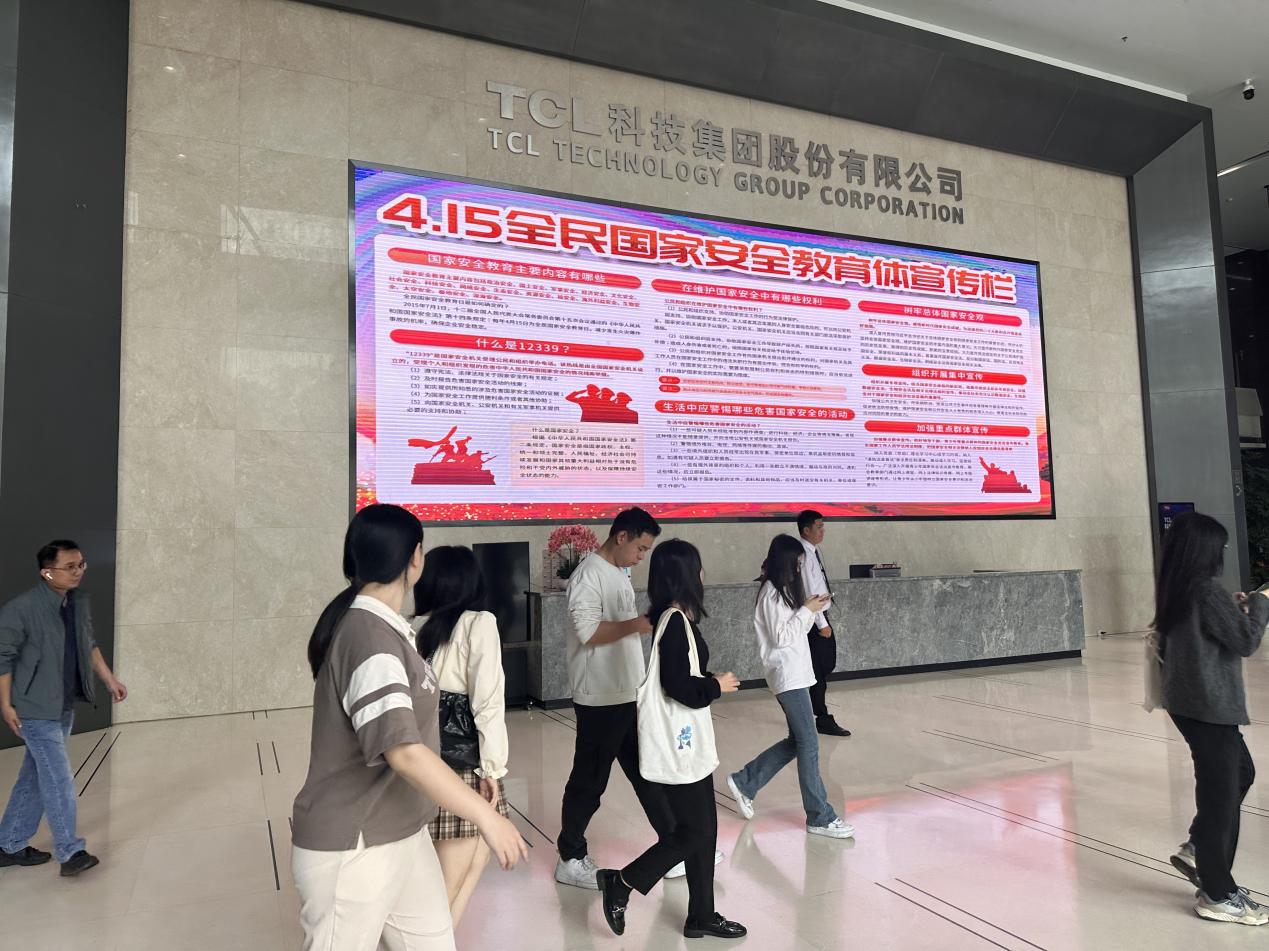 大屏等方式展示“4·15”全民国家安全教育日、“5·15”打击和防范经济犯罪宣传日”宣传海报及宣传口号。三