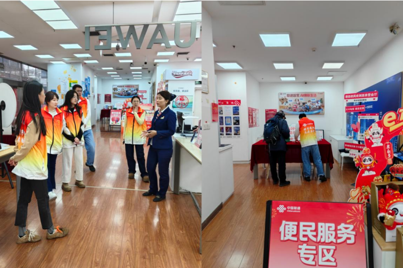 此外,志愿者们还当好营业厅的“服务助手”,在取号区、等候区、业务办理区定岗服务,协助工作人员维持现场秩序,引导客户有序取号、等候办理,帮助客户快速找到对应业务窗口,有效减少客户等候时间,提升客户体验,以志愿行动为服务提质增效赋能。