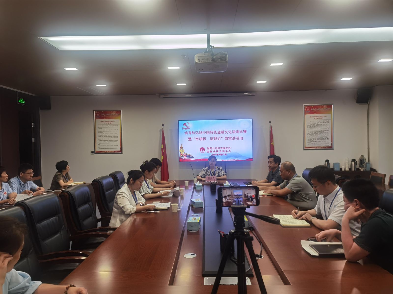 室举办公司第一期“培育和弘扬中国特色金融文化演讲比赛”暨“举旗帜·送理论”微宣讲活动,公司有关领导和党