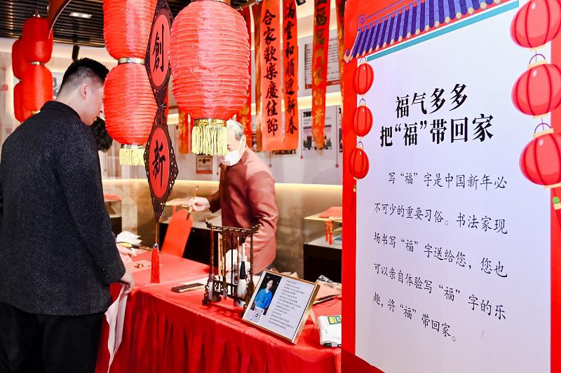 “迎新春表彰大会和欢乐大集”融合了表彰、新春民俗、团队互动、生活服务于一体。在新春送福区和民俗剪纸区,