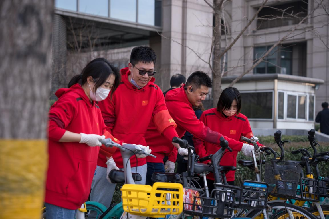 集团办公室、财务公司团员青年20余名志愿者,参与了金融街街区环境治理志愿服务,通过摆放共享单车,