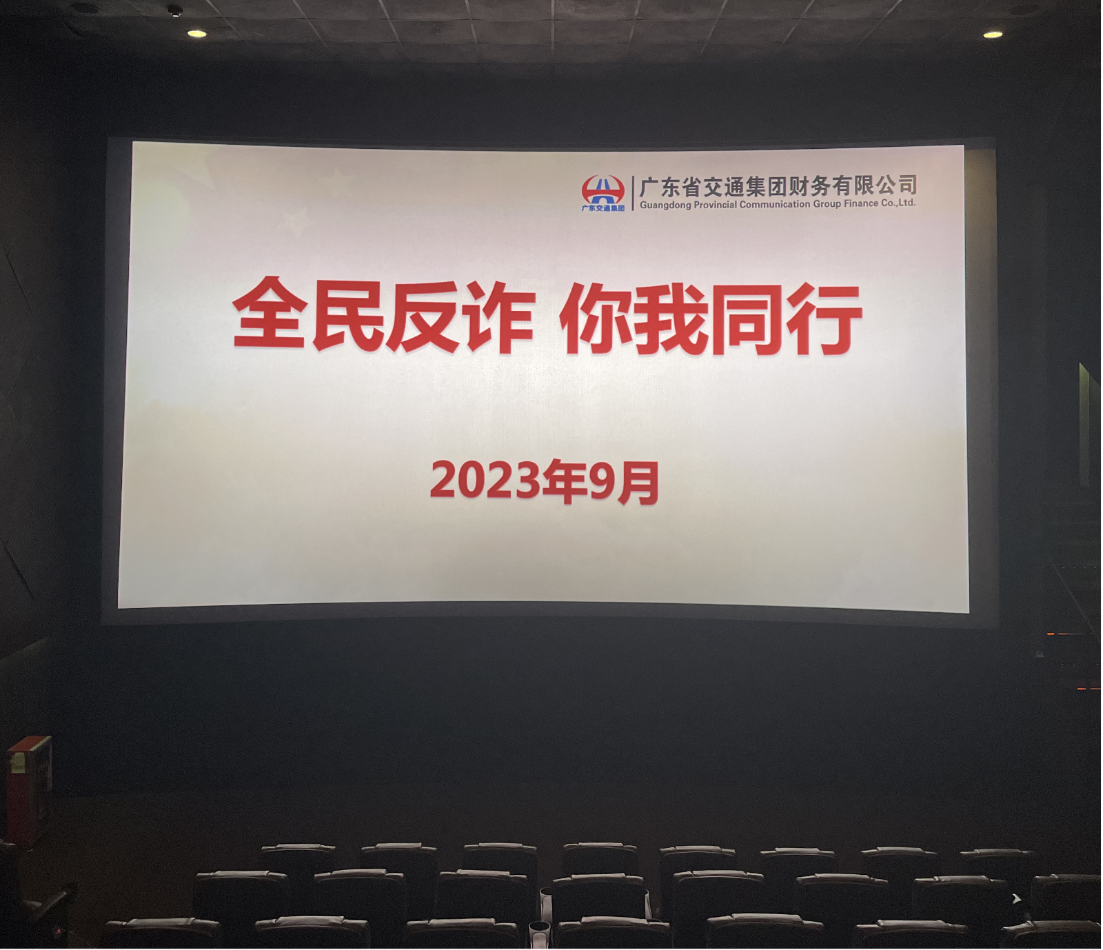 公司员工和成员单位代表在博纳UA花城汇电影城观看反诈主题普法教育电影《孤注一掷》,积极加入“全民反诈,你