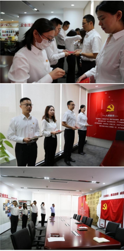 10月12日,财务公司党委为路希楠、张乃今、邢若水、宋璟晗等4名预备党员举行集体入党宣誓仪式,党委