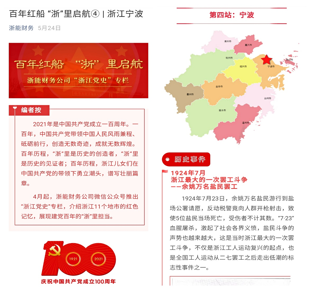 浙能财务公司公众号《百年红船 “浙”里启航》栏目