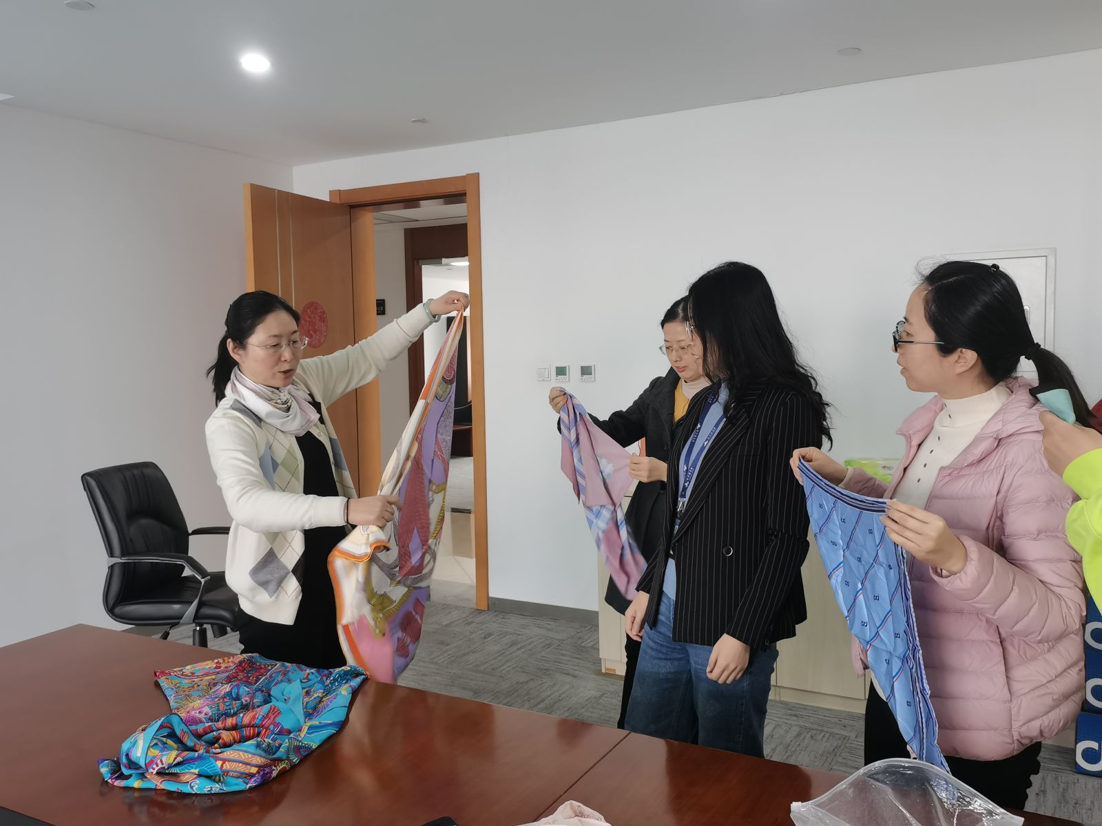 公司综合管理部总监郭虹通过亲身示范,介绍了各种形状丝巾的不同系法。公司女员工一边看一边学,并相互交流心得体会。经过近1个小时手把手讲解,大家眼前呈现出了爱马仕结、辫子结、蝴蝶花结、玫瑰花结、钻石结、桃心结等十余种系经典系法。郭虹还分享了丝巾搭配技巧,带领大家一起探索丝巾与服装的搭配秘诀,展现女性风采。