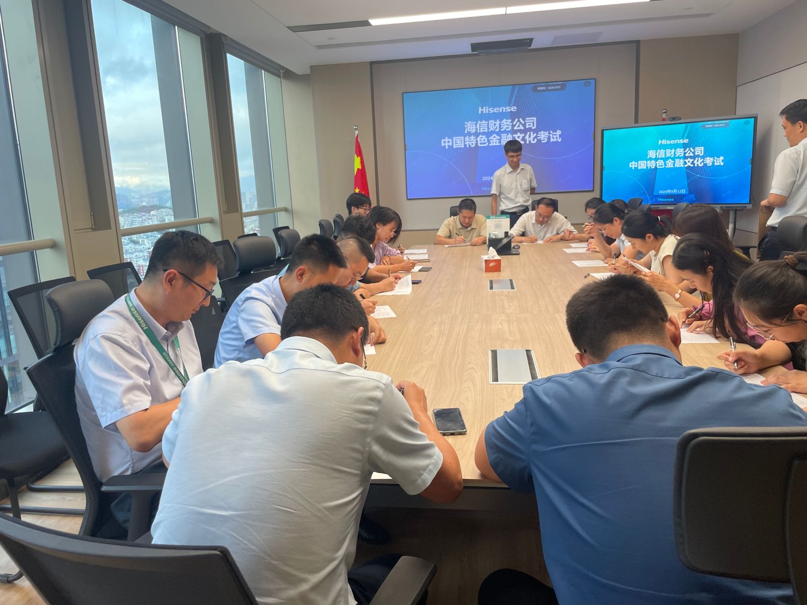 的知识沉淀情况,海信财务公司于9月12日组织60余名公司员工参加了金融文化专题考试。以考促学,提升