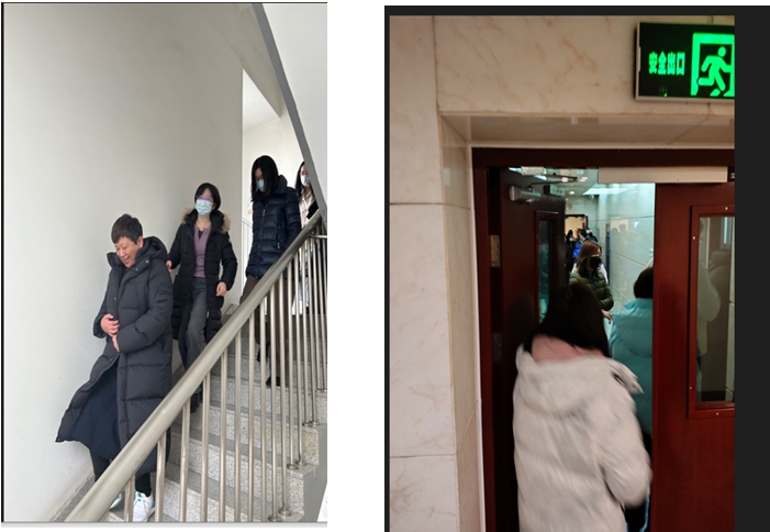 上午10时30分疏散演练正式开始,各小组组长迅速到位,沉着冷静地指挥本组人员有序撤离办公区,沿指定路线