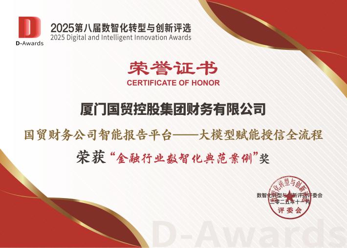 近日,国贸财务公司的“智能报告平台”凭借扎实的创新实践与显著的实战成效,成功斩获两项权威荣誉——来自“2025第八届数智化转型与创新评选”的“金融行业数智化典范案例”奖,以及来自“第七届智慧企业创新案例评选”的“智慧企业创新案例奖”。其中,在“第七届智慧企业创新案例评选”中,该项目从420项申报案例中脱颖而出,入选35个标杆案例之一。双重荣誉加持,既彰显了国贸财务公司在数智化转型领域的深厚积淀,也确立了公司在行业数智化进程中的前沿实践地位。