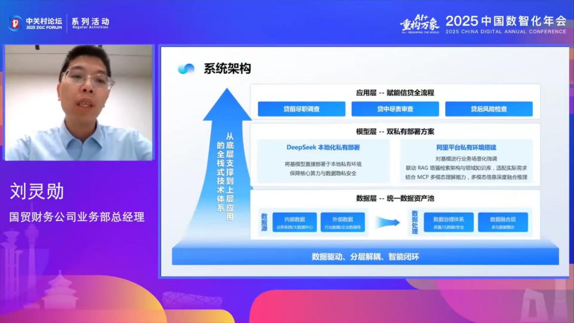 该平台的落地应用,不仅显著提升了国贸财务公司授信服务的效率与精准度,更形成了“技术赋能业务、业务反哺技术”的良性循环,同时该项目还受邀在“2025中国数智化年会——实战典范案例分享会”上分享项目建设经验和实践成果,为金融行业数智化升级提供可复制、可借鉴的实战样本。