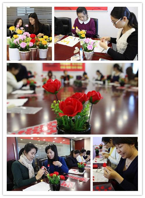 在活动中,女职工们兴趣盎然,不时发出欢快的笑声。由于是初次学习插花制作,难免会有失误,在活动中深刻体会到了“看花容易绣花难”,只有融汇用心、细心、耐心,锲而不舍,才能够制作成美丽的花朵。