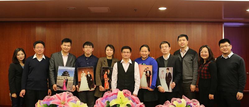 2015年,中国铁建财务有限公司有五名员工收获了爱情,走进了婚姻殿堂。1月21日下午,公司工会、团委联合举办了2015年度“新人座谈会”,为五位新人赠送了纪念册和鲜花。精美的纪念册记录了公司开业以来集体活动的精彩剪影和全体员工精心书写的祝福话语,一张一页满载着温情回忆,一字一句饱含了美好心愿。