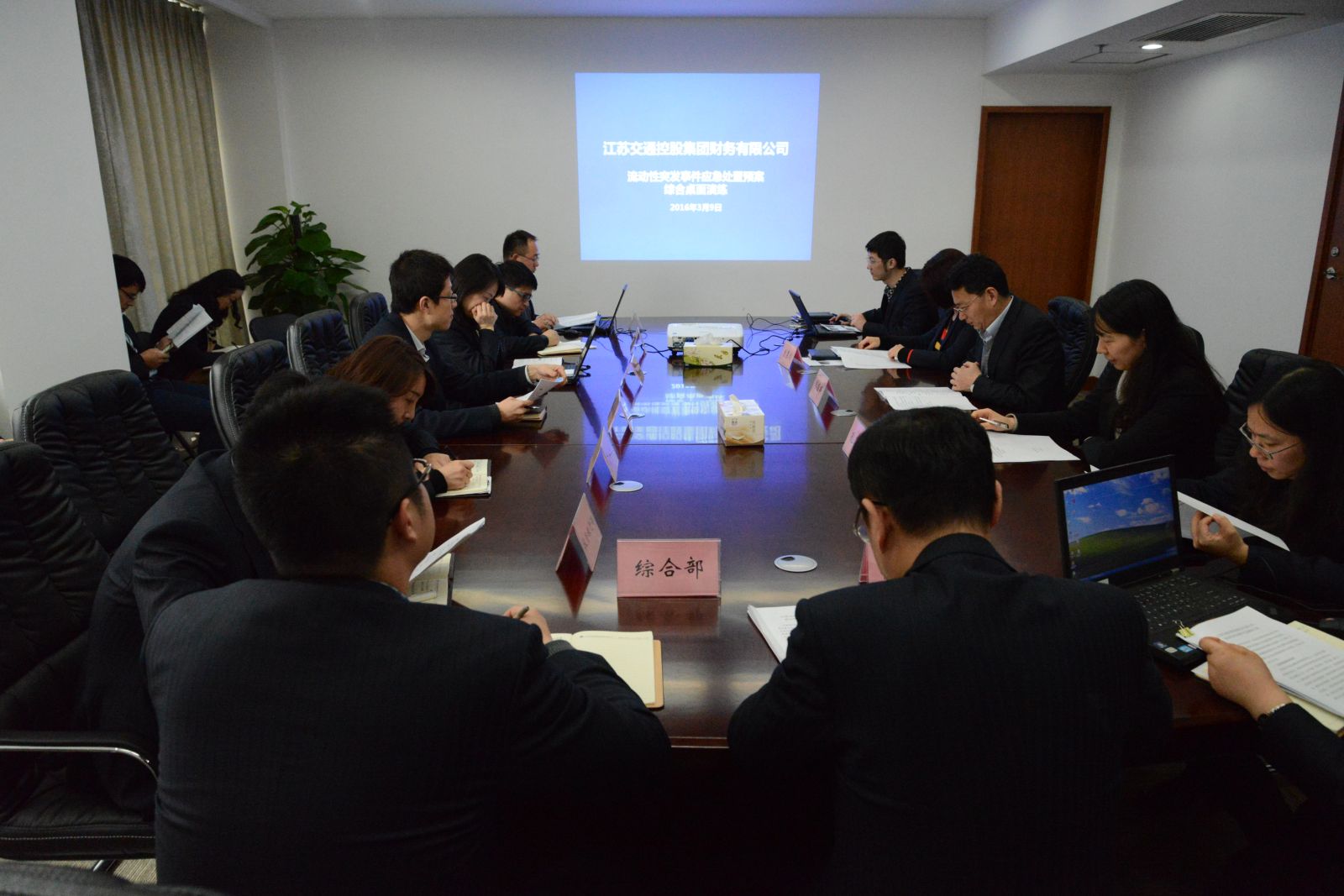 为增强风险防范意识,检验突发事件协同配合能力和应急处置水平,2016年3月9日下午,江苏交通控股集团财务有限公司举行首次流动性突发事件应急处置预案演练。
