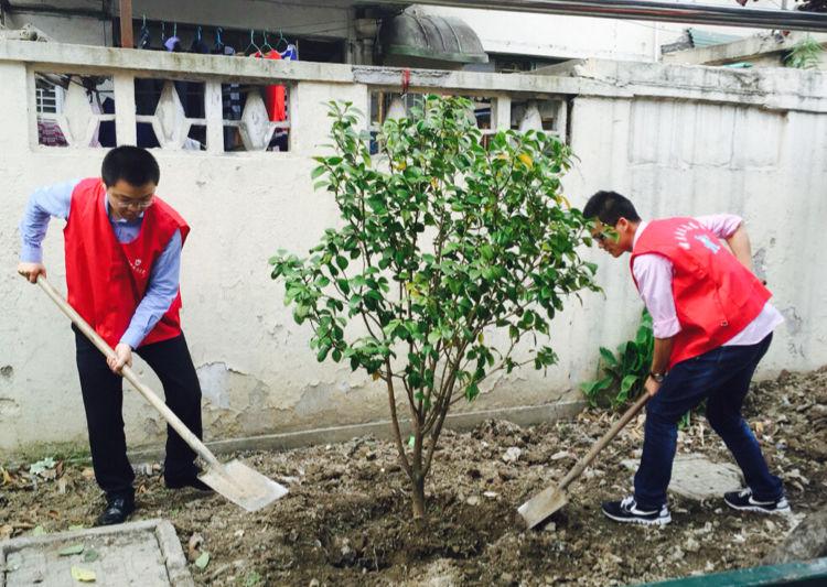 5月6日下午,浦发财务公司党总支携团员青年们来到南码头街道临沂六村居民区,开展植树活动。