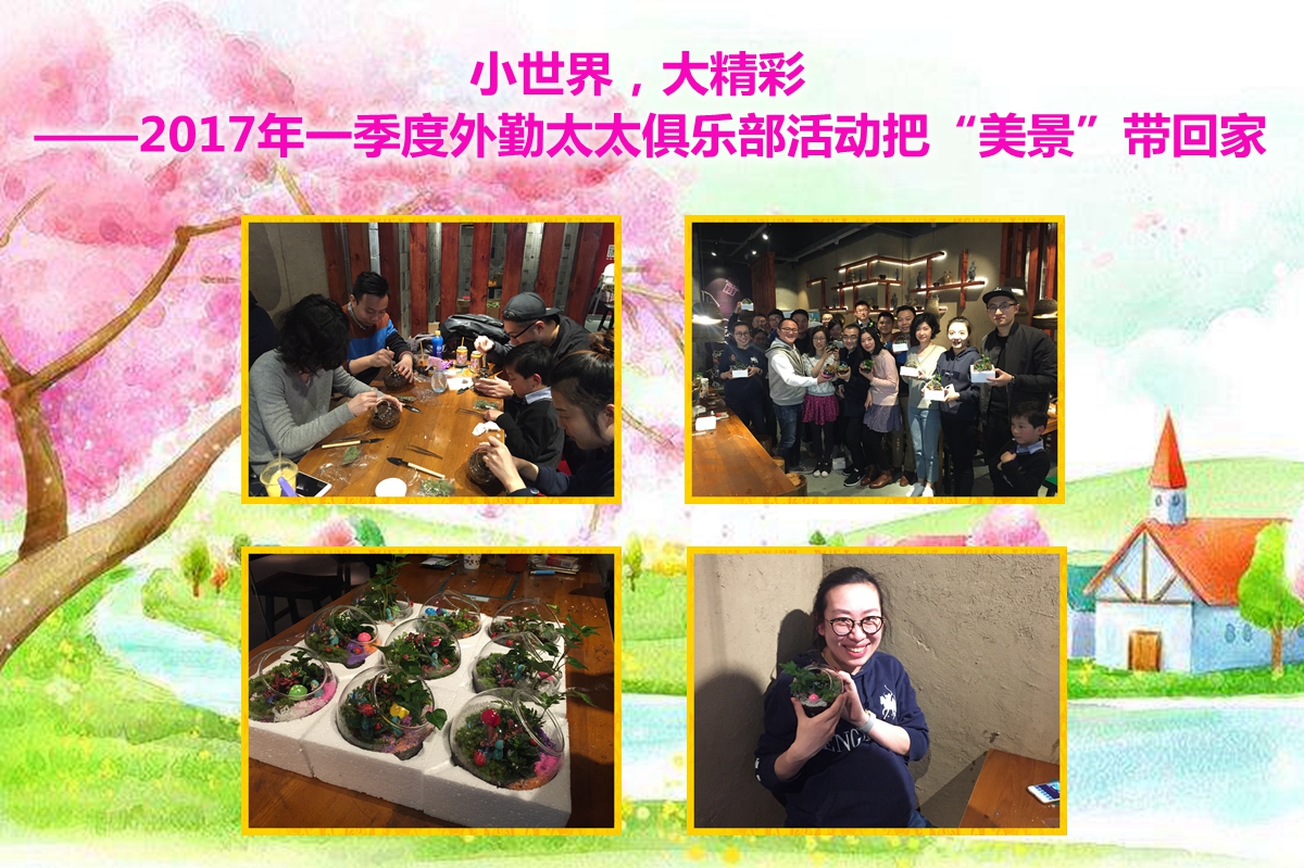 冬去春来,万象更新。3月25日,一个风和日丽的周末午后,上汽财务公司的外勤小伙伴们携家属一起迎来了今年第一季度的外勤太太俱乐部活动。按照惯例,公司工会在前期广泛征集了外勤团队的意见,初步确定了本年度的活动菜单,其中最受“太太们”欢迎的,当属这次的创意微景观DIY啦!