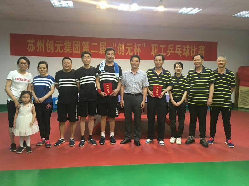 为进一步推进职工文化建设,丰富职工业余文化生活,促进职工身体素质提升,创元投资集团工联会、团委于5月13日联合举办了第二届“创元杯”职工乒乓球团体比赛。本次比赛全系统共有24支球队(单位)参赛,其中不乏有老牌劲旅如苏净集团、创元资产开发、苏钢厂等球队。创元财务公司队作为一支首次组队参赛的新军参加了本次大赛,比赛中全体队员不畏强手,敢打敢拼,赛出了水平,率先以B组第一的身份小组出线。在下午的淘汰赛中,财务公司队力克劲旅进入四强,最终荣获了本次乒乓球团体赛的季军,也是前三名中唯一一个非种子队。苏净集团队、创元资产开发队分获冠亚军。