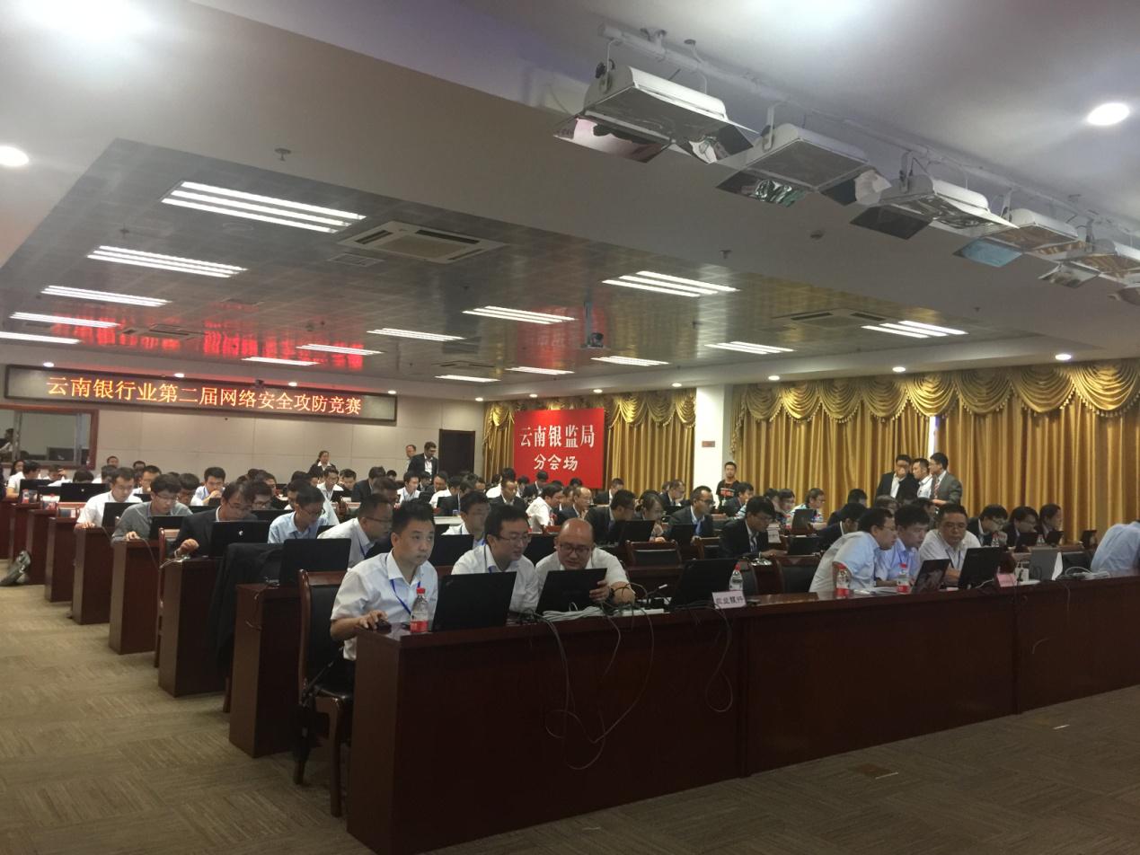 7月2日,云南银行业第二届网络安全攻防竞赛在昆明举行,由来自全省各地银行业信息科技精英组成的31支团队、90多名选手上演了一场精彩纷呈“网络战争”,矛与盾的激烈对抗,意志与智慧的较量,令人拍手叫绝。