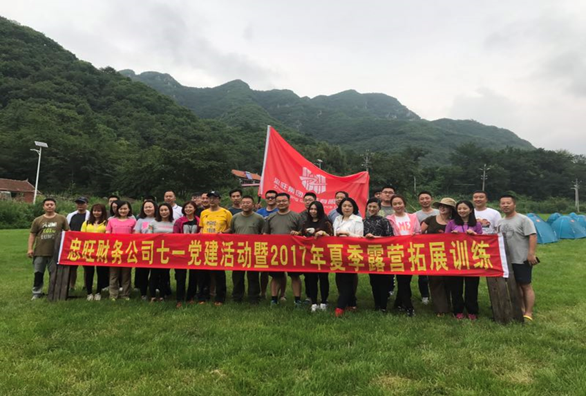 为纪念中国共产党成立96周年,增强公司团队协作精神,营造健康向上、和谐团结的氛围,增进员工间沟通与交流,2017年7月22日至23日,忠旺集团财务有限公司党支部组织公司全体党员和员工到大连天门山野外露营拓展基地开展七一党建活动暨2017年夏季露营拓展训练。
