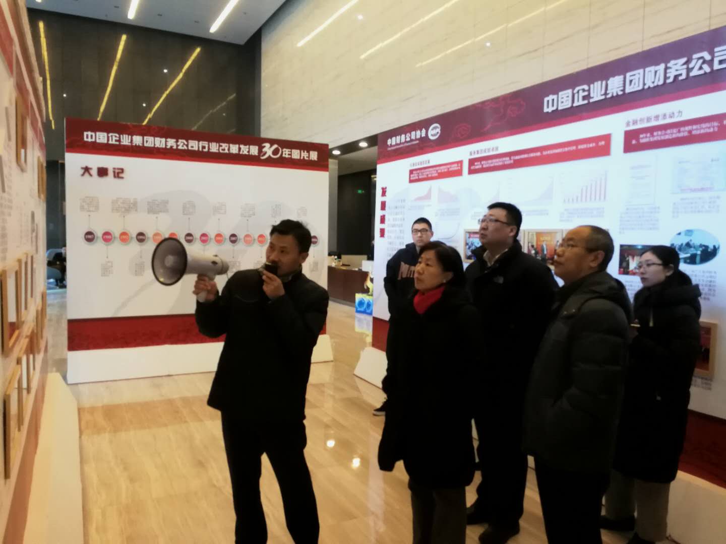 2018年1月11日上午,在党委书记、总经理李宗英的带领下,中核财务有限责任公司领导班子及各部门员工一行20余人赴中国财务公司协会参观“不忘初心 砥砺前行——中国企业集团财务公司行业改革发展30年”图片展。