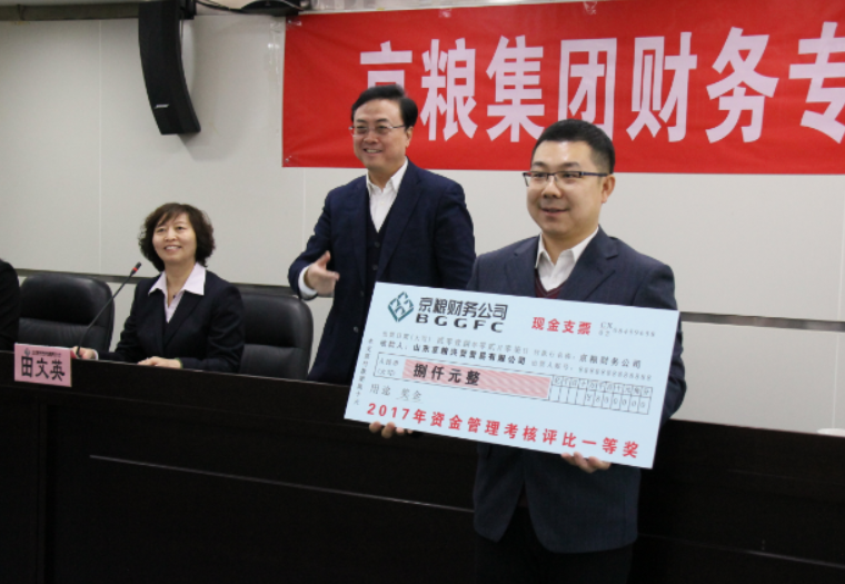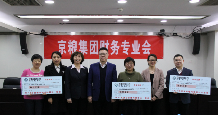 2018年2月7日,在京粮集团2018年度财务专业会上,京粮集团董事长王国丰及财务公司董事长张存亮对2017年度资金管理优秀企业进行了表彰与颁奖。