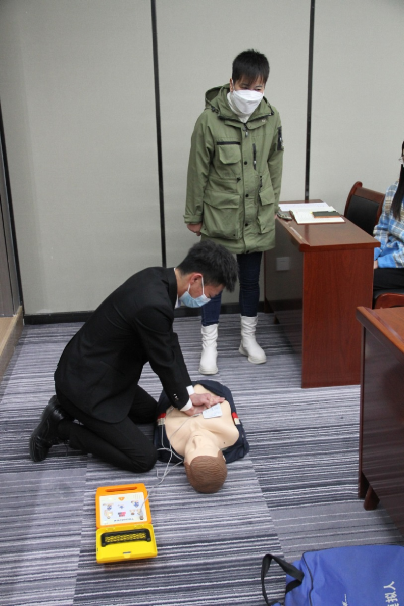 本次培训内容包括心肺复苏术(CPR)、自动体外除颤仪(AED)使用方法等。夏老师结合自身多年急救经验,为大家详细讲解了心肺复苏等相关急救知识,并现场教学自动体外除颤仪(AED)与心肺复苏的有效结合,均达到了预期培训效果。