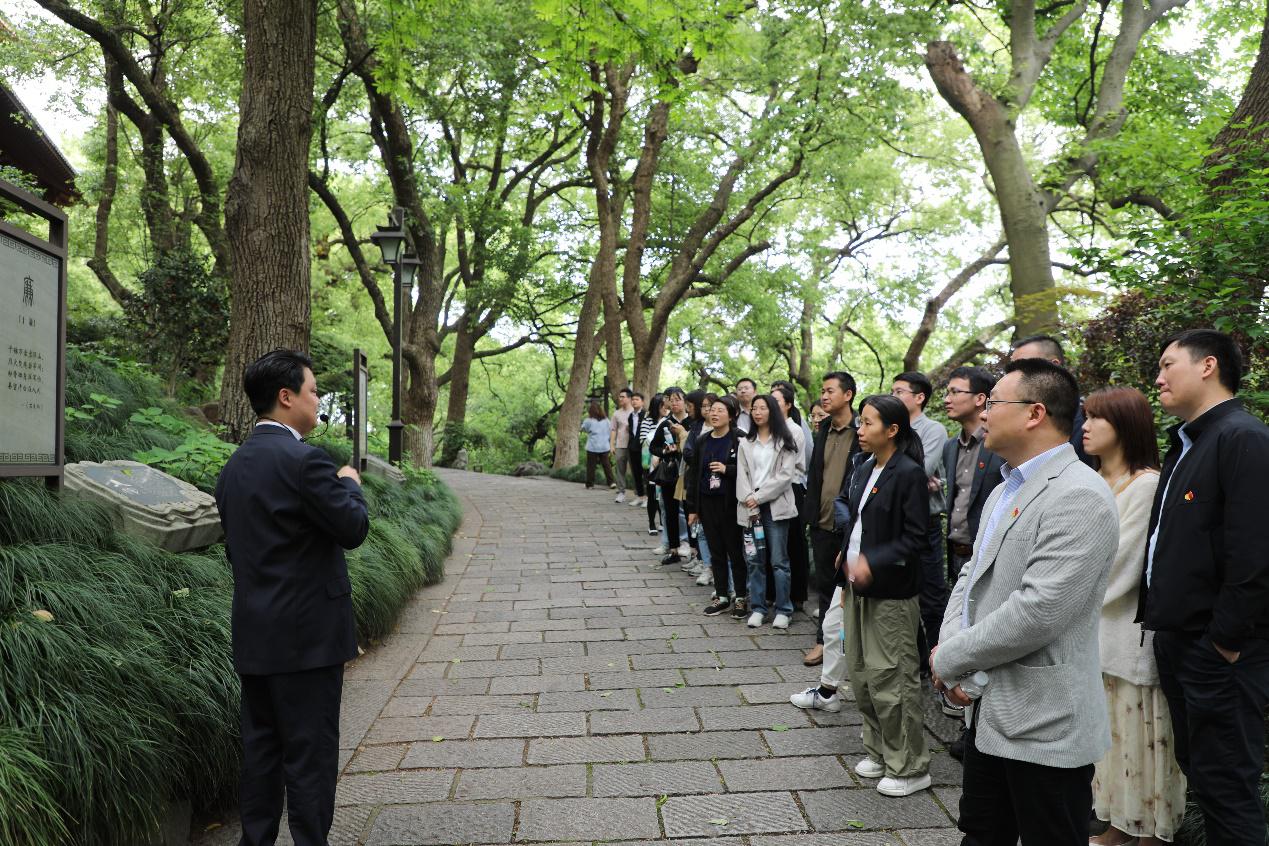 浙能财务公司党员在“名人小径”认真聆听清廉事迹。戚鹏博 摄