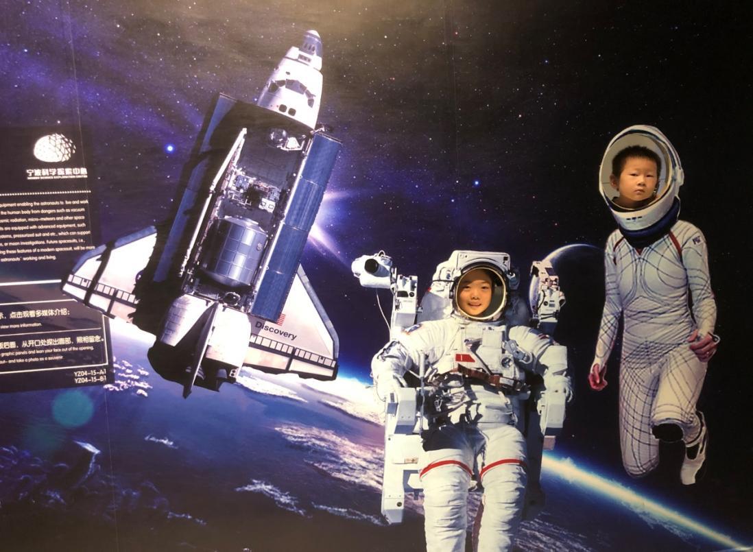 “浩瀚宇宙,茫茫星辰,科学家们如何探索宇宙?”在宁波科学探索中心宇宙展厅中,孩子们在讲解员的介绍