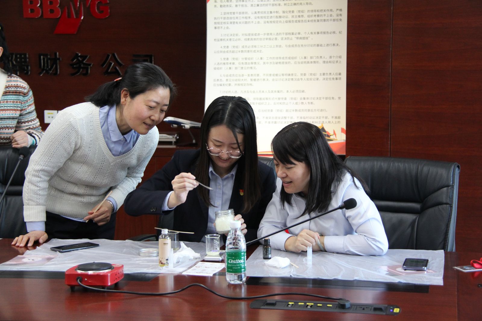 公司工会邀请专业讲师,现场教学制作唇膏。通过详细讲解制作所需的材料、配比方法、作用功效等知识,搭配演示互动等形式,带领女职工了解相关成分知识,关爱自己,呵护美丽。