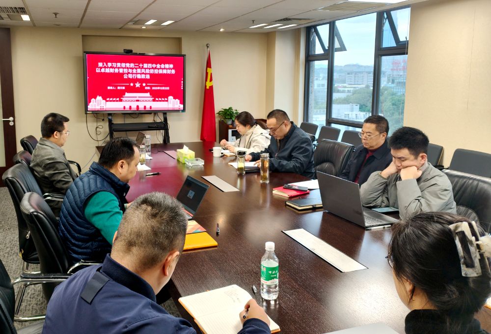 公司党支部书记、总经理杨晓武在总结时强调,学习贯彻全会精神要在“深学”“细悟”“笃行”上下功夫。要紧盯全年目标任务,扎实推进智慧司库建设、现代风控体系构建等重点任务,切实推动公司从“化险保牌”向“价值创造”转型升级。