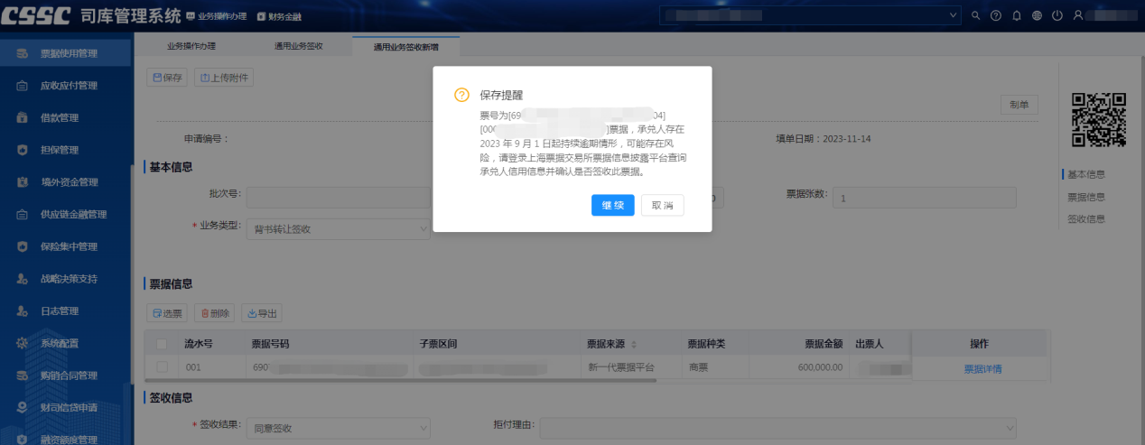 国船舶司库系统“一站式票据管家”再次优化升级,实现票据签收校验、手持票据提醒及特殊承兑人名单查看等多项