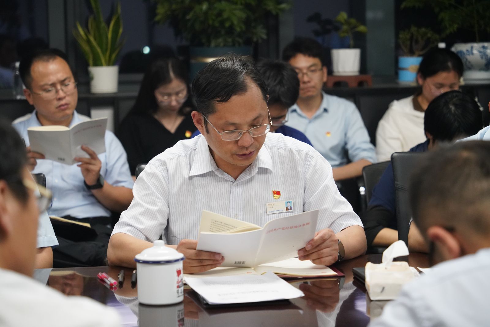 神,要求全体党员和干部务必领会和贯彻到位。随后,党支部各委员作为领学人,依次带领与会人员逐条逐句学习
