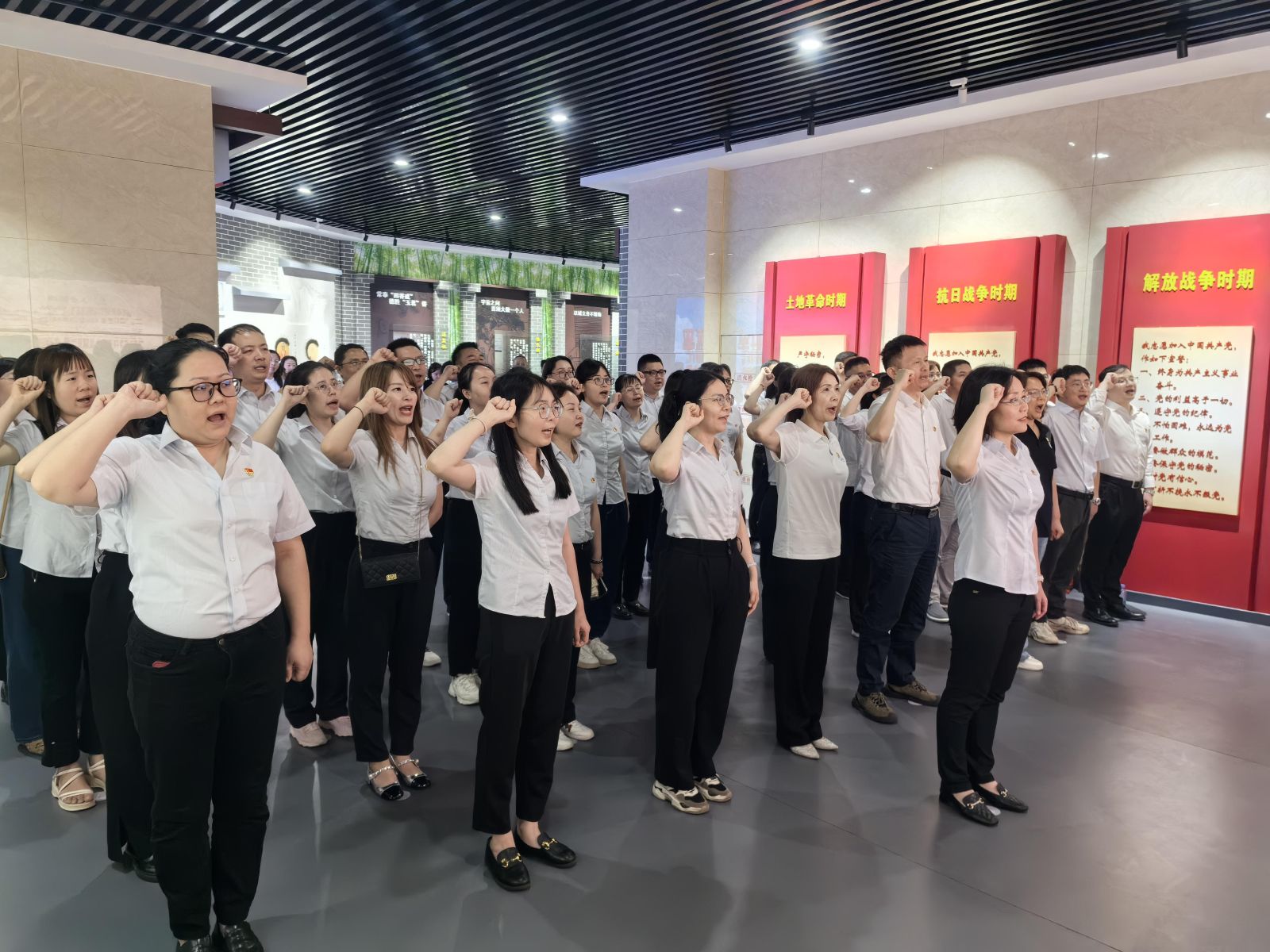 参观结束后,在庄严的党旗下,由江铃财务公司党总支书记杨小芳带领全体党员,再次齐声诵读入党誓词,每一个