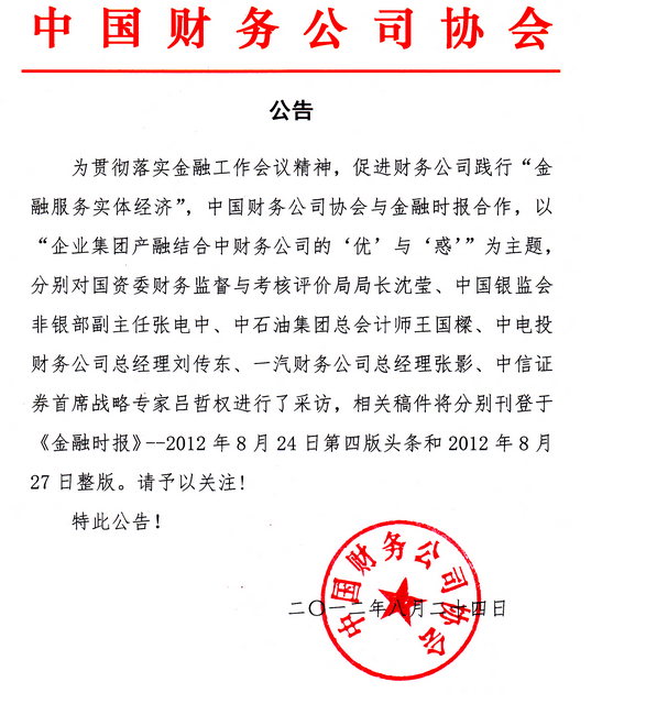 欢迎访问中国财务公司协会平台