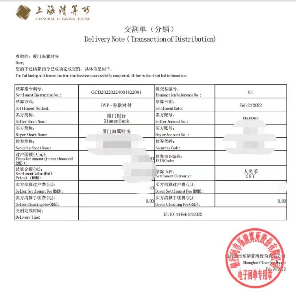 近日,厦门海翼集团财务有限公司通过一级分销方式与厦门银行总行合作,成功买入某AAA级超短期融资券。这是海翼财务公司在打通上海清算所托管债券二级市场投资渠道的基础上,进一步深化一级市场债券投资渠道。