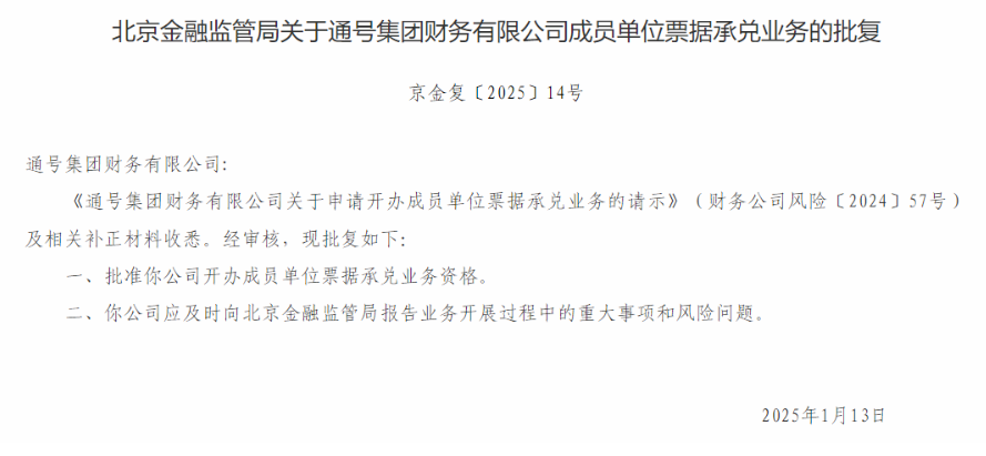 近日,经国家金融监督管理总局北京监管局批准,通号财务公司正式取得票据承兑资质,获准开展票据承兑业