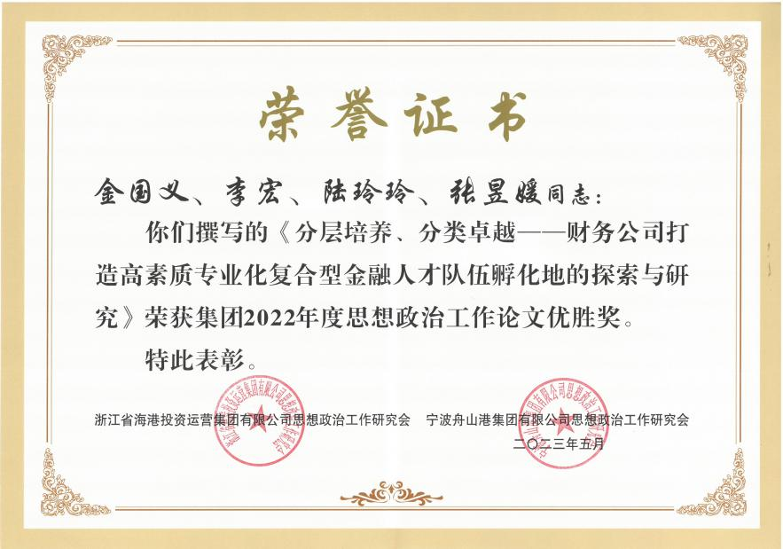 等各项荣誉。其中,浙江海港集团财务有限公司(下称“财务公司”)获评集团2020-2022年度文明单位,