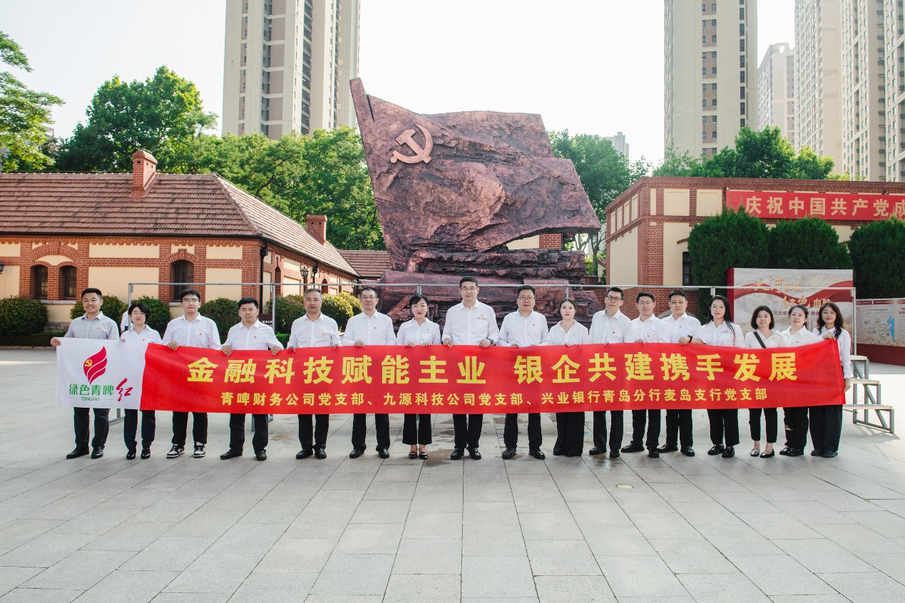 为庆祝中国共产党成立104周年,深入学习贯彻习近平新时代中国特色社会主义思想,7月11日,青岛啤酒财务公司党支部、九源科技公司党支部、兴业银行青岛分行麦岛支行党支部联合组织“金融科技赋能主业 银企共建携手发展”主题党日活动。通过实地参观研学、重温入党誓词、签约共建协议,让党史学习、共建活动“活”起来、“实”起来,推动党建与业务深度融合,借助金融科技的力量,深化银企合作,共同为青岛啤酒主业的高质量发展赋能。