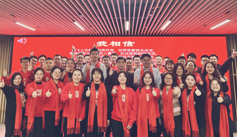 最后,财务公司管理团队为大家送上新春祝福,全员齐声合唱《我相信》。