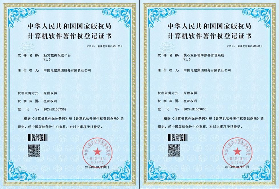 利率报备管理系统”四项计算机软件著作权已通过中国版权保护中心审核,国家版权局予以确权登记并颁发证