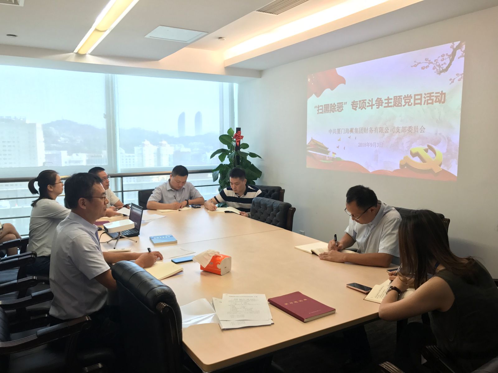 近日,厦门海翼集团财务有限公司组织开展了“扫黑除恶”专项斗争主题党日活动。