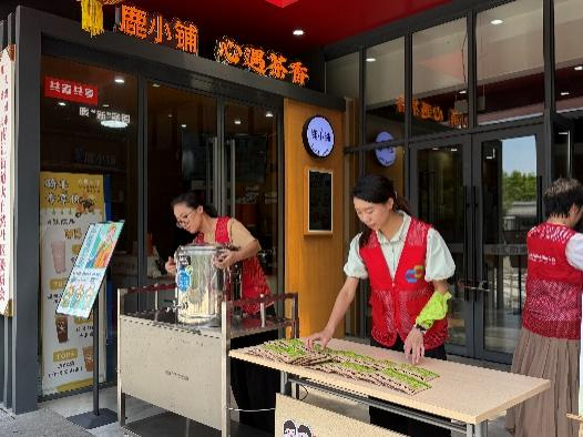 活动当天,志愿者们早早来到茯茶供应点,认真学习传统茯茶的制作工艺。伴随着袅袅茶香,志愿者们将一杯杯清凉解暑的茯茶,连同精心准备的夏日清凉冷感湿巾,亲手送到环卫工人、快递小哥等户外工作者手中。“一杯茯茶”和“一条湿巾”,不仅驱散了酷暑的炎热,更承载着公司对户外工作者的敬意与关怀。志愿者们希望通过这一实际行动,唤起社会各界对户外工作者群体的更多关注,共同营造关爱、互助的和谐社会氛围。