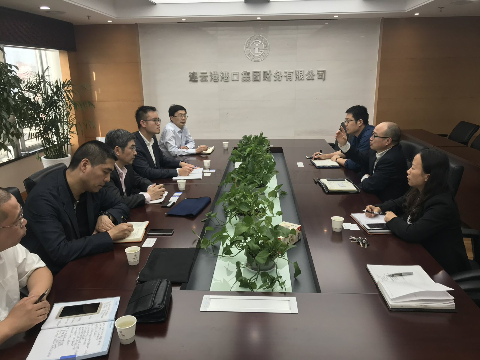 2018年5月23日下午,江苏省建行国际部副总经理陈标、建银亚洲陈鸿智一行来到连云港港口集团财务公司交流开展国际金融业务。财务公司总经理成彦龙、副总经理赵箭、山海(香港)公司副总经理师兰芳参加了交流会。交流分为现场踏勘和座谈两个环节进行。