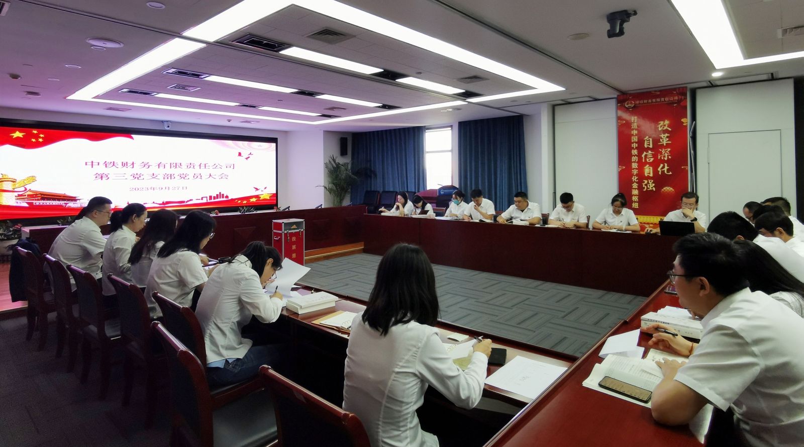 近日,中铁财务公司第三党支部召开党员大会暨“争当劳动竞赛先锋”主题党日活动。