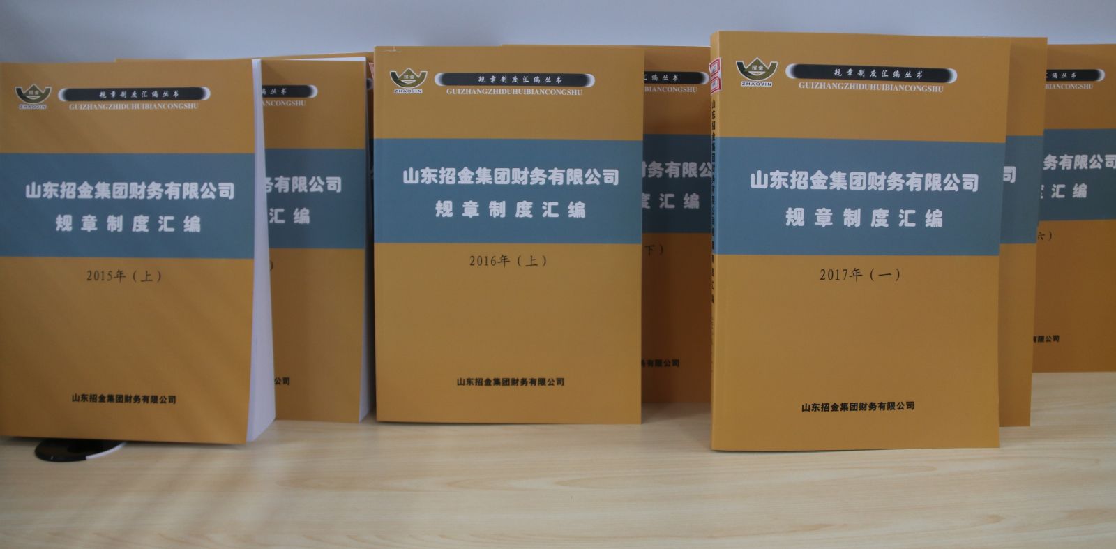 凡事制度先行、一切按照规则执行,是招金财务公司一直坚持的经营准则,为了落实这个准则,3年来全体员工夙夜在公,枕戈待旦。坚持“做我所写、写我所做”,先后完成各种管理制度188个,操作手册131个、风险点与控制要点105个,监督检查手册114个,会议纪要195个,共形成220万字6000页的制度汇编材料,公司治理形成了管理办法、操作手册、风险管理手册、监督检查手册“四位一体”的管理制度体系。