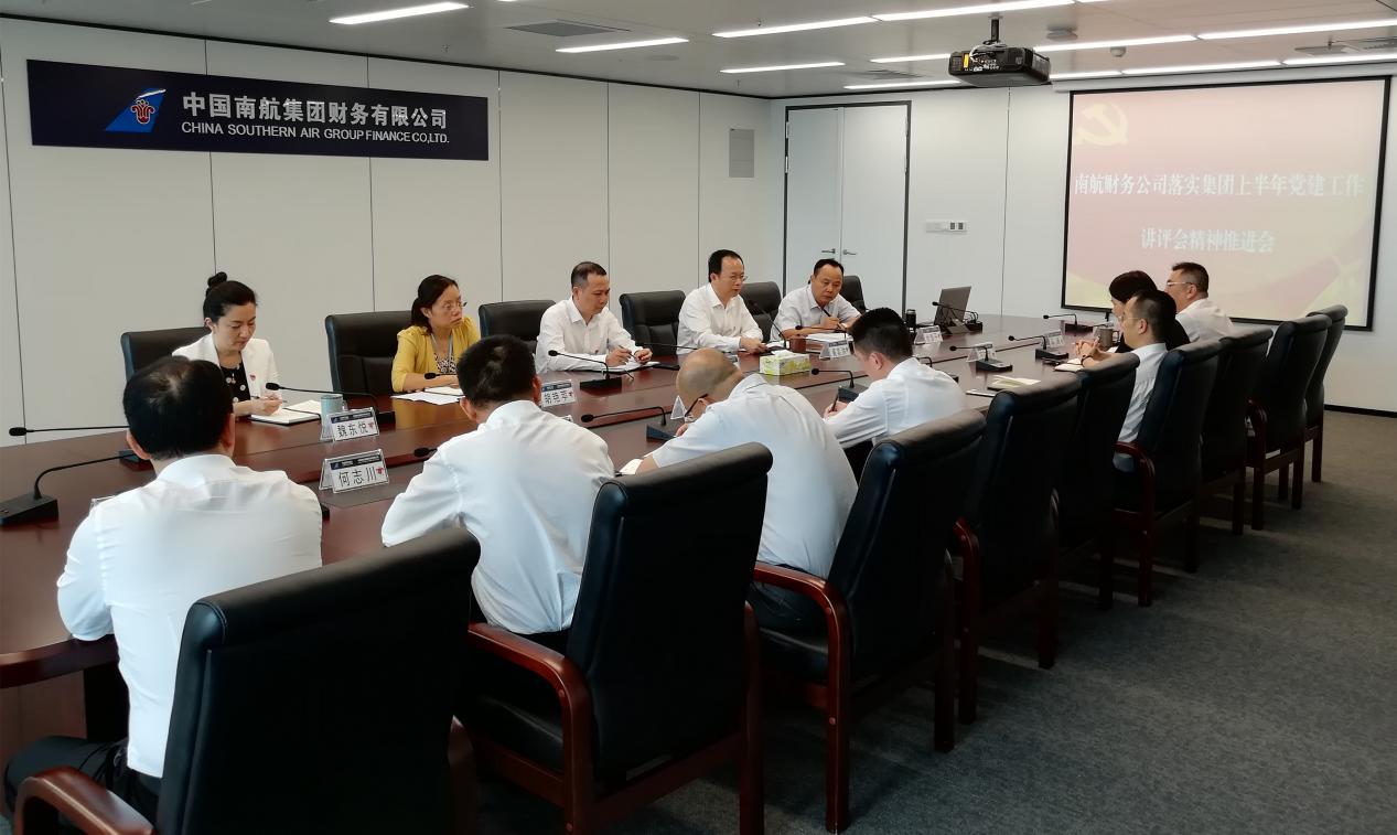 2018年7月31日,南航集团财务有限公司召开落实集团上半年党建工作讲评会精神推进会,党委书记黄奕洪主持会议。