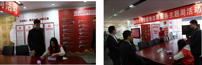 青年志愿者3月8日在公司库房、员工活动室、会议室、更衣室、打印机周边及无人工位等其他公共办公区