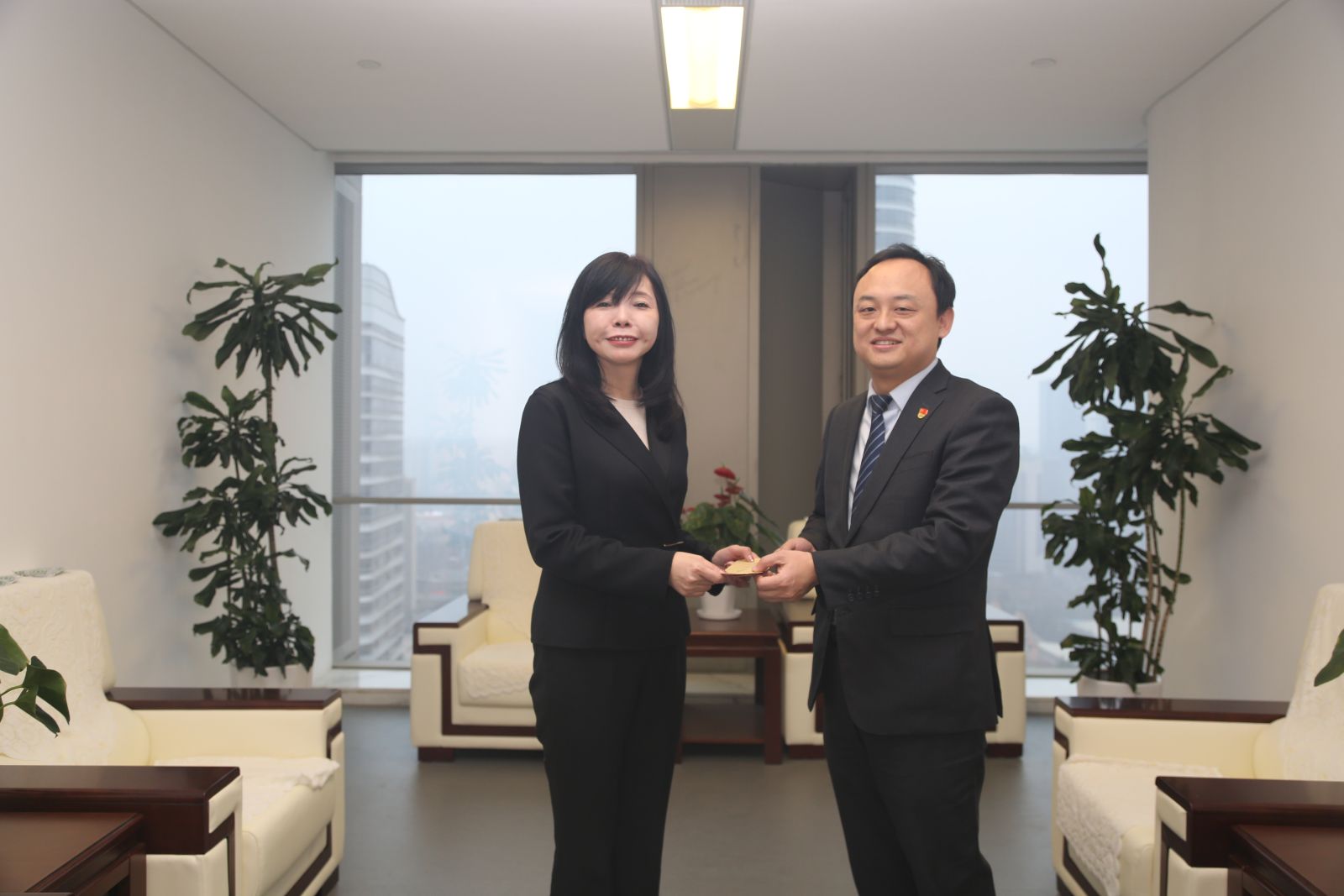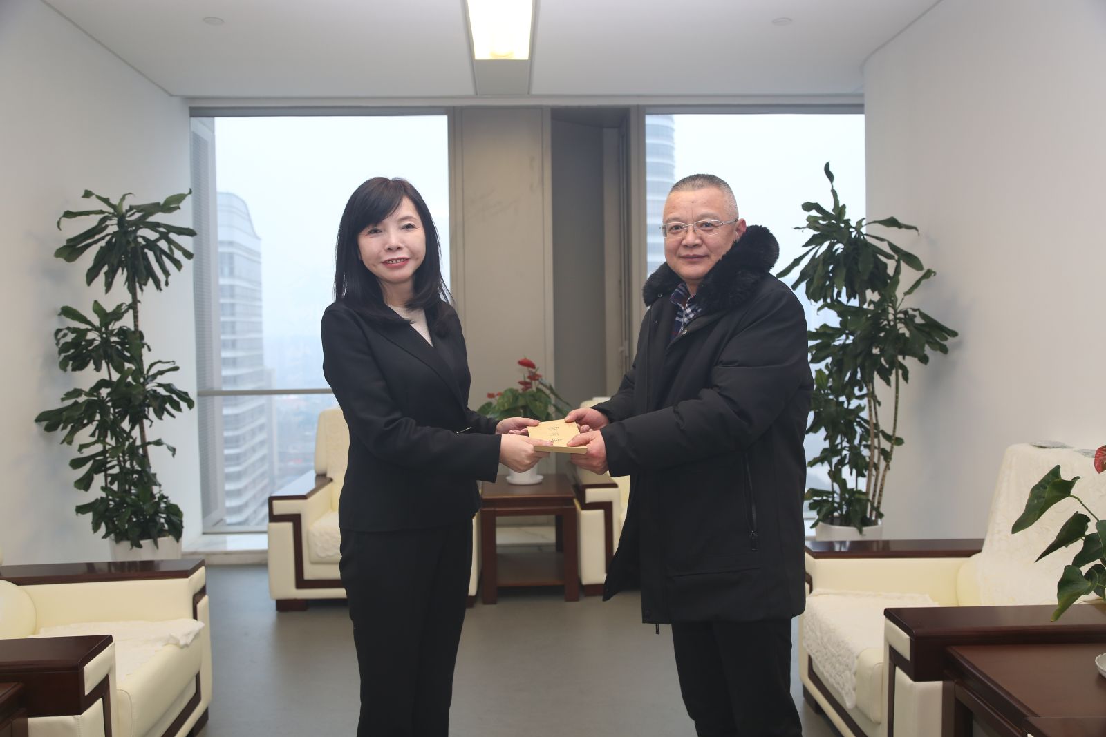 沙春枝看望劳动模范并送上党组织的关怀,感谢他们为推动财务公司高质量发展做出的贡献,嘱咐他们不忘初心、