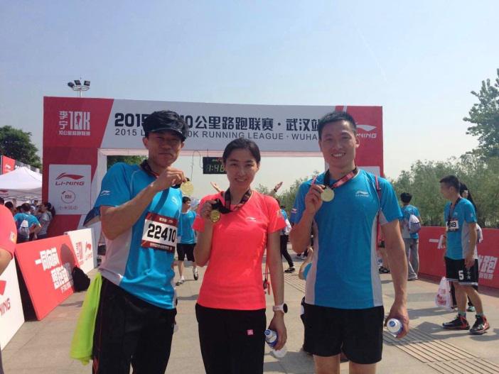 同一天,武汉分公司也组织员工参加了“2015年李宁10公里路跑联赛-武汉站”的比赛,参赛人员取得了优异的成绩,并获得了完赛奖牌和成绩证书。